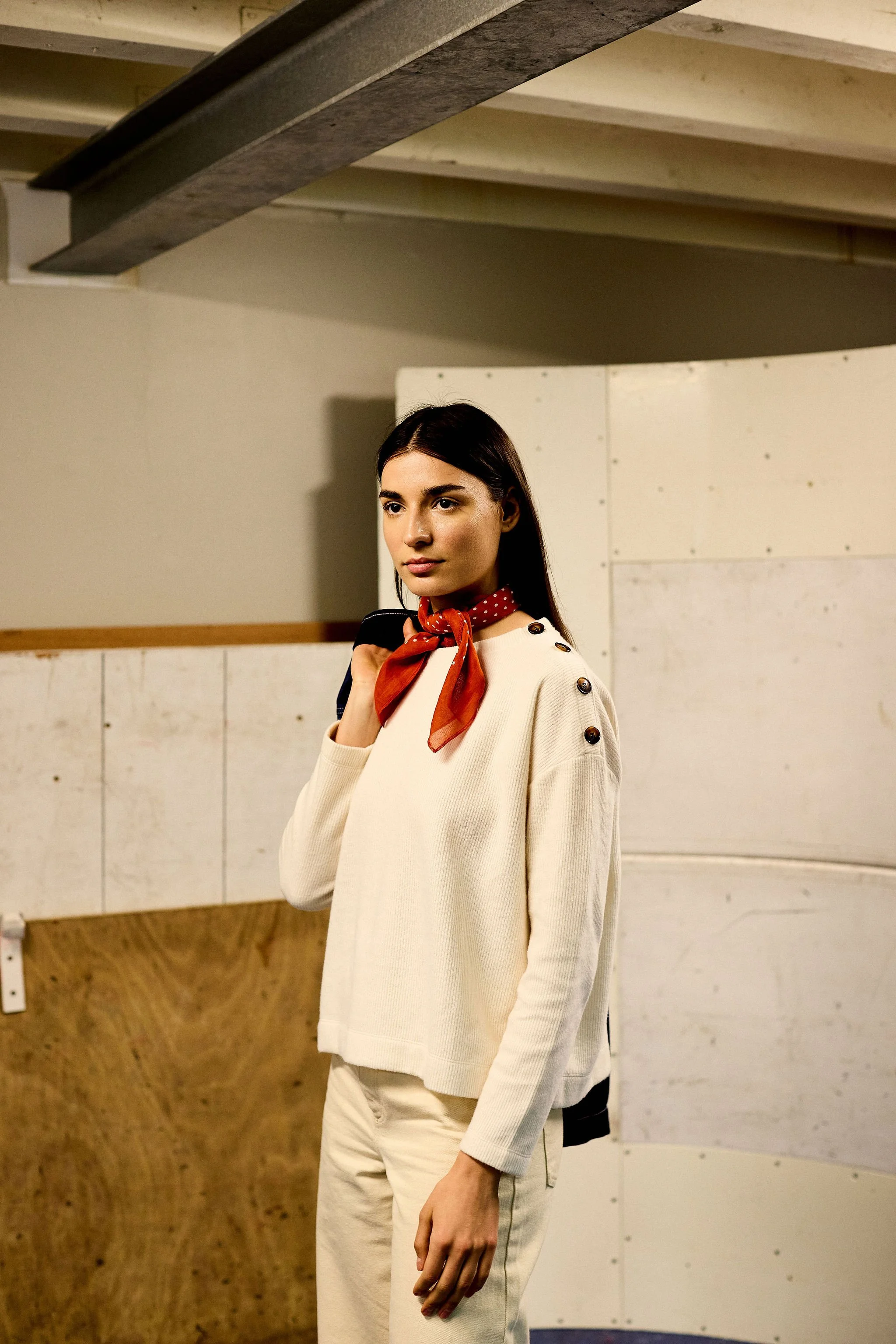 Chloé de b. has always loved designing, imagining, and making clothes. This passion comes from her grandfather (founder of the Petit Boy brand) and has run in the family for four generations. With her diploma from Saint Martin's School of London in hand, Chloé joined the family business before founding her own children's brand, Arsène et les Pipelettes, in 2005 on the Basque coast. First children's clothing, then baby clothes, and now with 10 boutiques in Europe and points of sale worldwide, Chloé launched her first women's collection in 2018. Over the years, women have become more independent and have spread their wings. The a.p brand was born in 2022. a.p is Chloé's ideal wardrobe: "Strong and timeless pieces that enhance the look of those who wear them."